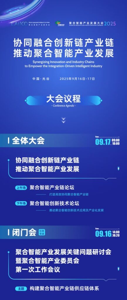 大会围绕「协同融合创新链产业链推动聚合智能产业发展」主题,设置一场全体大会、一场闭门会。