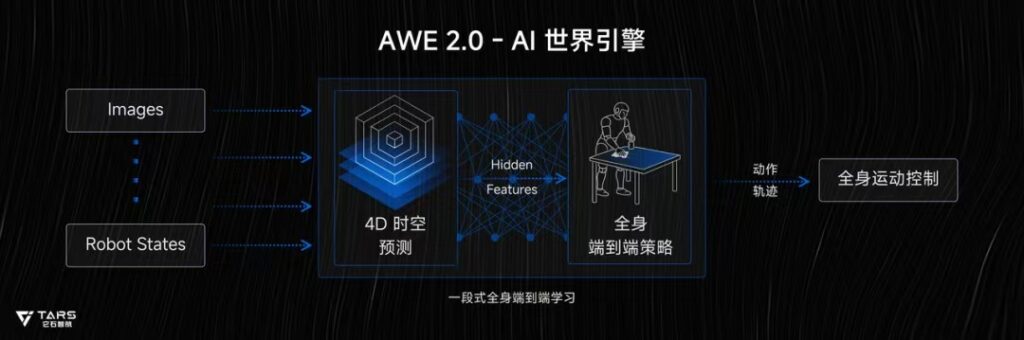 此外,在模型方面,它石基于海量真实数据构建了 TARS AWE 2.0,通过空间感知预训练,构建机器人对世界的认知模型。