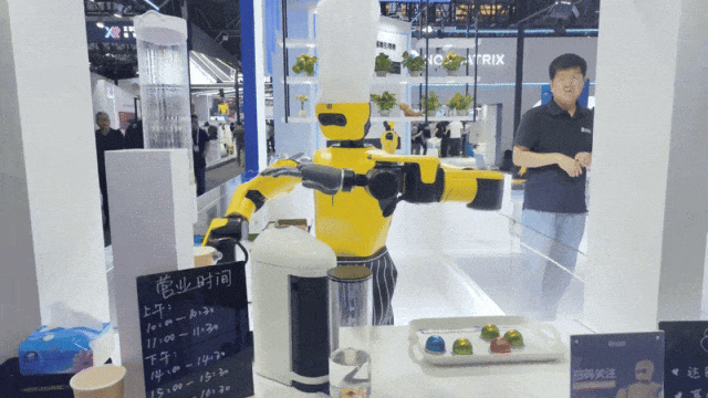 像跨维智能的人形机器人 DexForce W1 Pro 在冲咖啡时展现出稳定的长线程工作能力,这些都是机器人已经可以在生活中给人们提供便利的证明。