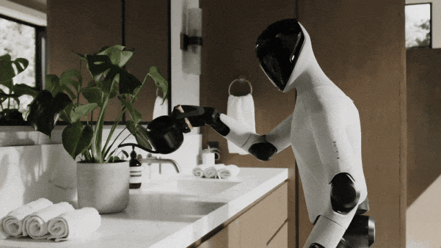 具体来看,NEO 能够在家里做到洗衣服、扫地、拿重物等工作,也可以跟用户互动,解答问题。