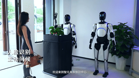 例如智元远征 A2,在导览的场景应用中,它可以完成主动问候、分发饮用水,然后带着游客沿途讲解互动,最终到达目的地中去。