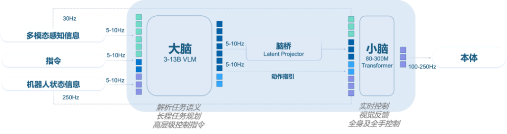 银河通用则是将「大脑、小脑、神经控制」统一到了一个端到端模型 AstraBrain 当中,避免割裂开发带来模块间信息损耗的问题。