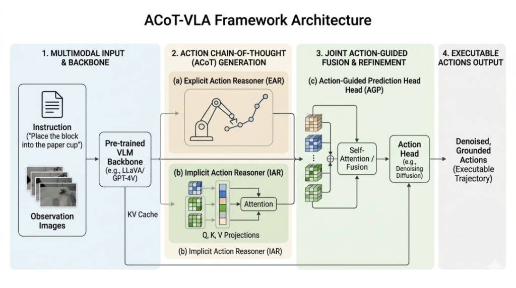 具体来看,模型在接收到任务后,并不会立即输出底层控制信号,会先生成一段高层动作序列。这段序列不是简单的指令集合,是对整个任务执行路径的结构化表达,包含了行为的顺序、阶段划分以及整体方向。