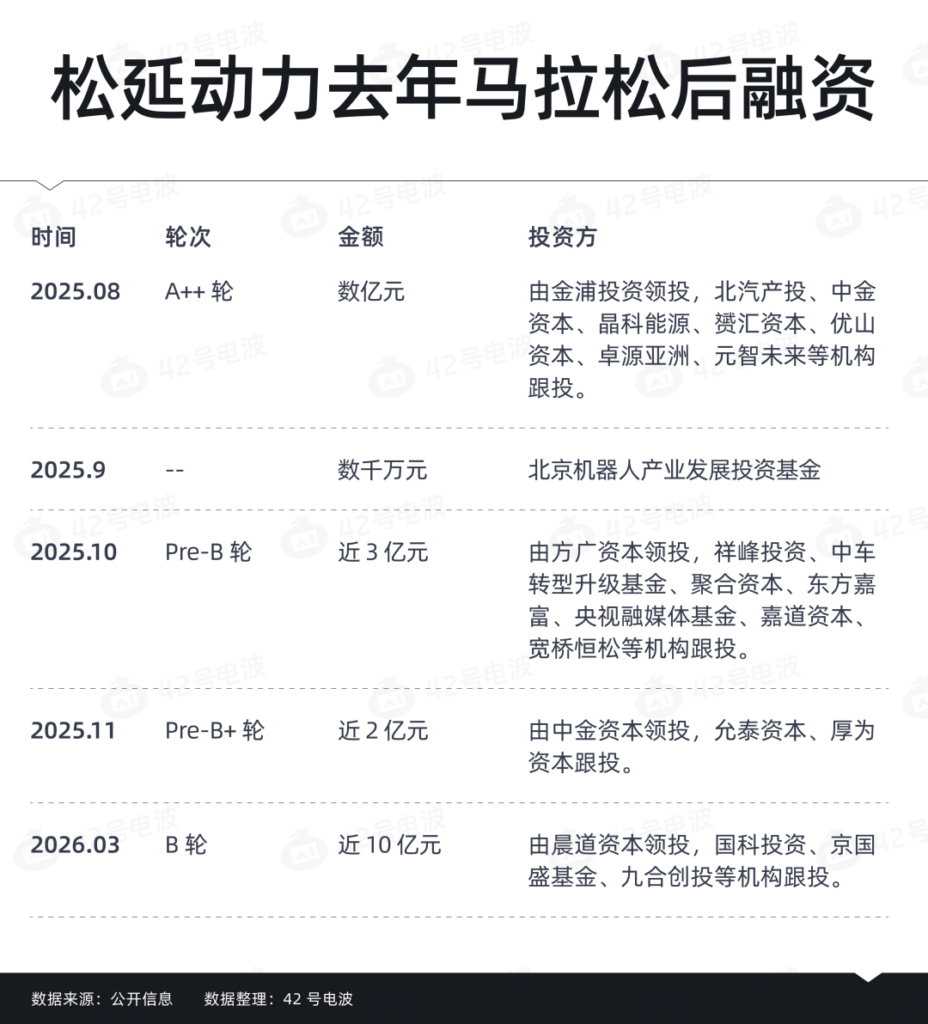 不过在这条赛道上,松延动力的融资还是相对比较密集的,去年机器人半马到现在,融资金额至少有 16 亿元。消费级机器人的量产和落地,则是他们过去一年的重心。