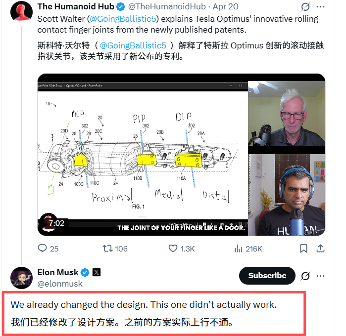 值得一提的是,不想被抄作业的特斯拉,在此前不久也公开了一些灵巧手方面的专利,拆解了一些整体构型、前臂、手腕、手指、布线等方面的细节,只不过马斯克对此表示:「我们已经修改了设计方案,之前的方案实际上行不通。」